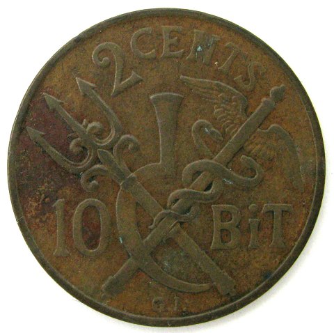 Dansk Vestindien, 10 bit/2 cent, 1905, Christian IX, bronze, Sieg 26, H 35