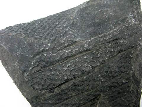 Smykke aftegninger af skæl og formodentlig et chamæleon lignende øje, flot aftrykt i basaltsten.