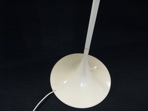 Verner Panton Pantella standerlampe med skærm af hvidt plast. Fremstillet hos Louis Poulsen og formgivet i 1970. H. 130 cm., skærm diameter 50 cm. Fremstår med gulnet fod og stamme med flere ridser. Plastskærm helt indtakt uden revner eller ridser.