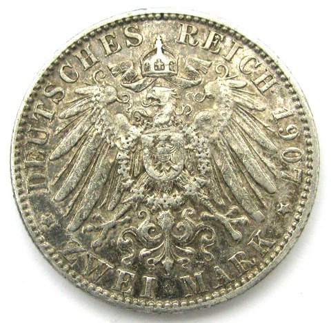 Friedrich August III, 2 Mark, 1907, Sachsen-Albertine