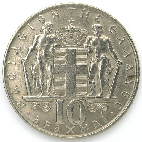 Grækenland, Konstantin II, 10 Drachmer 1968 - KM 96