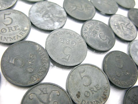 Samling 5 øre zink, heriblandt 1950 - 1951, i alt 180 gr.