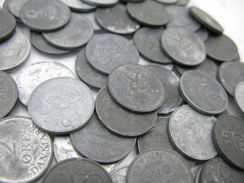Samling 2 øre zink, heriblandt 2 stk. årstal 1949 - i alt 283 gr.