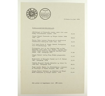 Inkl. forlagsfortegnelse fra juni 1978 samt et hæfte "Storstrømsamtets Numismatiske Forening" fra marts 1977.