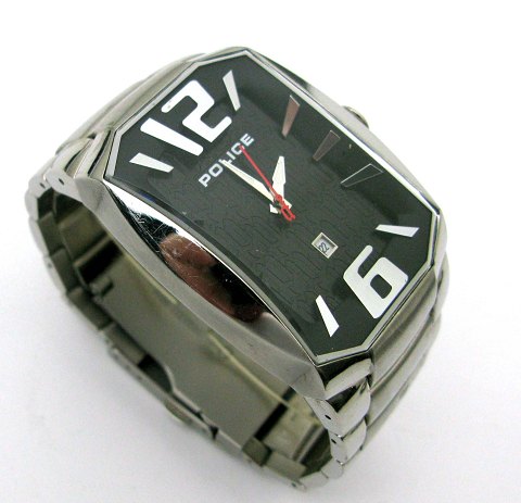 Police Kerosine Black herrearmbåndsur i urkasse og med lænke af stål. Sort skive med arabertal og stregindikation, central sekundviser og datovisning i #6 positionen. Quartzværk. Urkasse