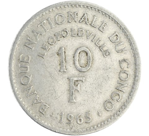 Congo, 10 francs, 1965, Aluminium