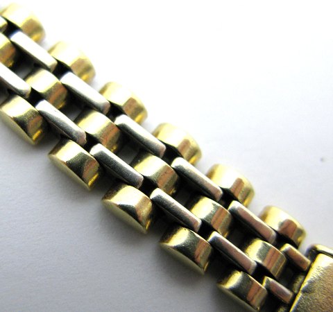 Genève damearmbåndsur i urkasse og med lænke af 14 kt. guld. Champagnefarvet skive med stregindikation. Quartzværk. Urkasse diameter 19 mm. Samlet vægt ca. 27 gr.
