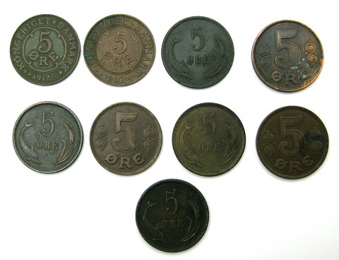 Christian IX / Frederik VIII / Christian X, 5 øre bronze (9)