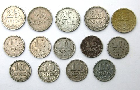 Christian X, 10 øre og 25 øre kobbernikkel fra 1920 og 1921 (14)