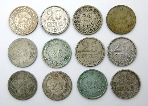 Christian IX / Frederik VIII / Christian X, 25 øre sølv 1874-1916 (12)