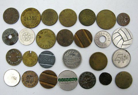 Lot diverse jetons, token og spillemærker (27)