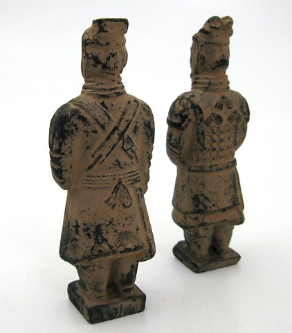 Lot med to ældre kopifigurer af brændt ler, efter den første Keiser Qin Shi Huangs terracottahær. H. 12 cm.