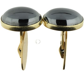 Par manchetknapper af guld 14 kt. prydet med store hæmatitter
