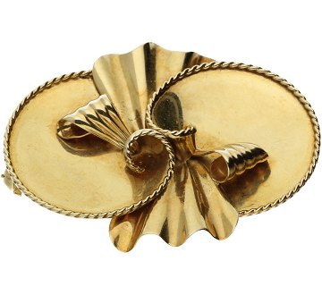 Broche af guld 14 kt - "sløjfe og skåle"