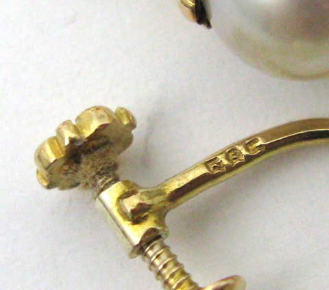 Par øreskruer af 14 kt. guld, hver prydet med 6½ mm. kulturperle. L. 17 mm., samlet vægt ca. 2,6 gr.