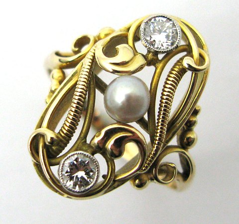 Ring af 14 kt. guld med perle og brillanter 0,35 ct.