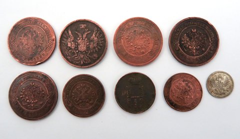 Bestående af 1 kopek 1852,1912 2 kopek 1854,1894 3 kopek 1874,1913,14,15 og 5 kopek 1899