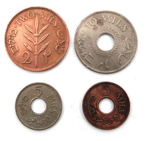 Palestina, lille lot 2, 5 og 10 Mils (4)