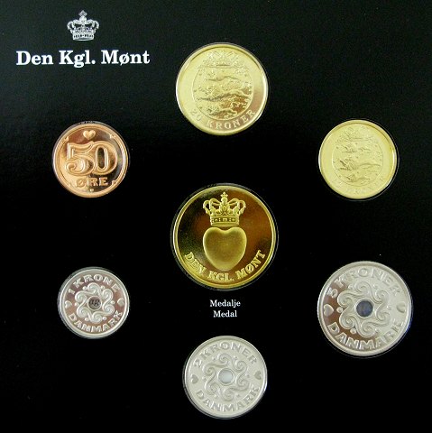 Møntsættet indeholder: 50 øre, 1, 2, 5, 10 og 20 kr samt medaille hvor bagsiden visen en kopi af en madialle, der blev præget 1739 i forbindelse m. indvielsen af flådens første tørdok, mens forsiden viser et hjerte under en krone.