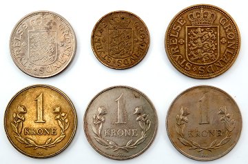 Lot, Grønland, 6 stk. forskellige mønter 1926-1964