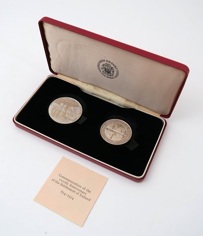 Island, erindringsmønter 874-1974, 500 kr og 1000 kr sterling sølv