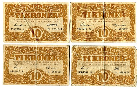 Danmark, 10 kr, 5 kr og 2x 1 kr (7)