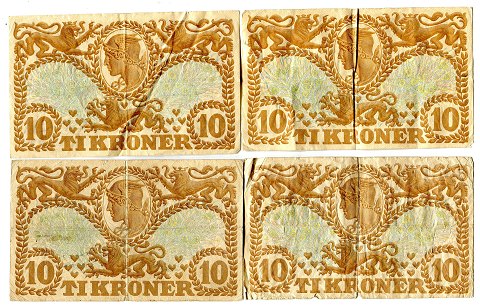 Danmark, 10 kr, 5 kr og 2x 1 kr (7)
