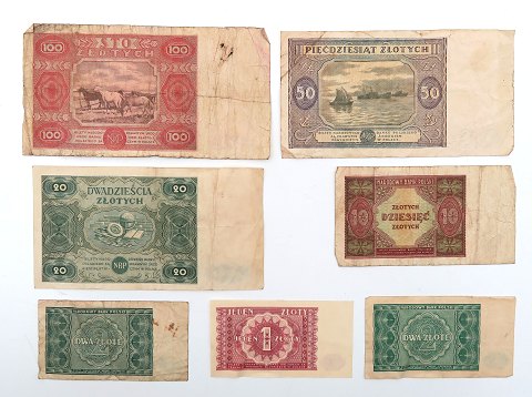 Polen, 100, 50, 20, 10. 2x 2 og 1 Zlotych 1946 og 1947 (7)