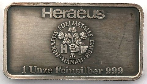 Heräus, 1 ounce finsølv.