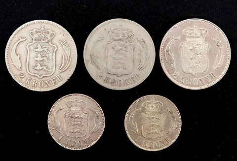 Christian IX / Christian X, 1 kr og 2 kr sølv (5)