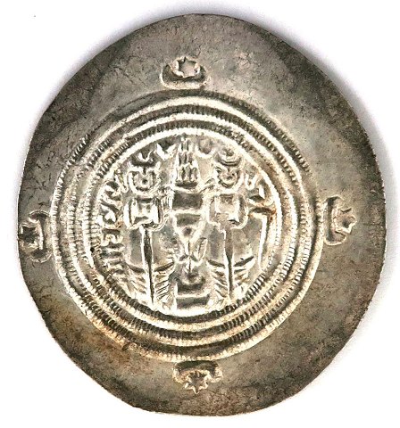 Sassaninerne, Khushru II (590-627 e.Kr.) Drachme sølv - YR.57