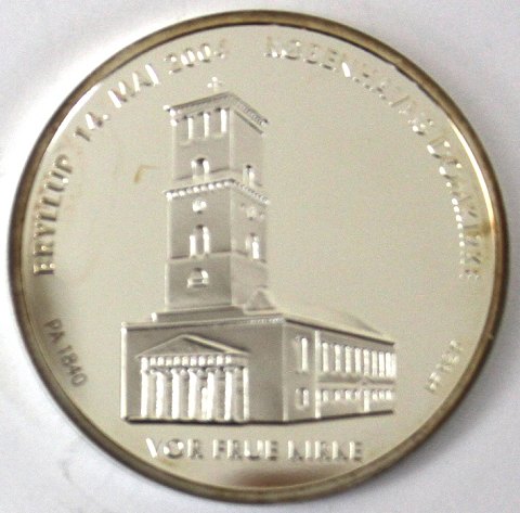 Bryllupsmedalje, præget i anledning af Kronpris Frederik og Kronprinsesse Mary´s bryllup d. 14. maj 2004, sølv.