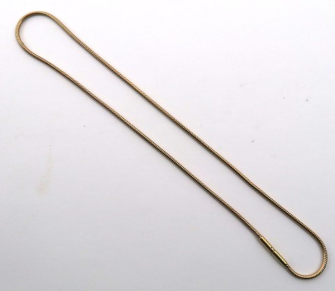 Halskæde af guld 14 kt, slangemønstret. L. 42,5 cm., vægt ca. 9 gr.