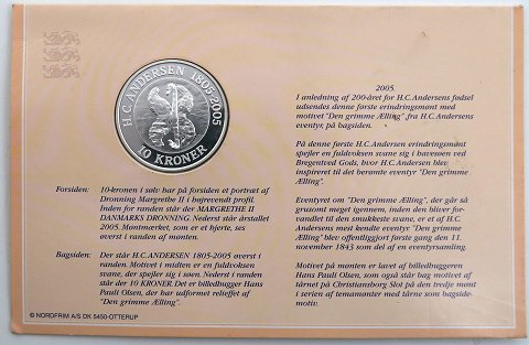 10 kr erindringsmønt, udgivet i anledning af 200-året for H.C. Andersens fødsel. Møntbrevet er udgivet af Nordfrim.