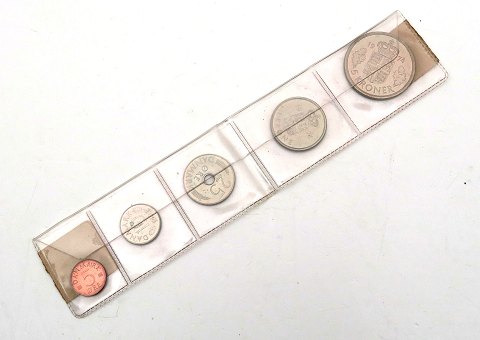 Indeholder 5 kr, 1 kr, 25 øre, 10 øre og 5 øre 1974