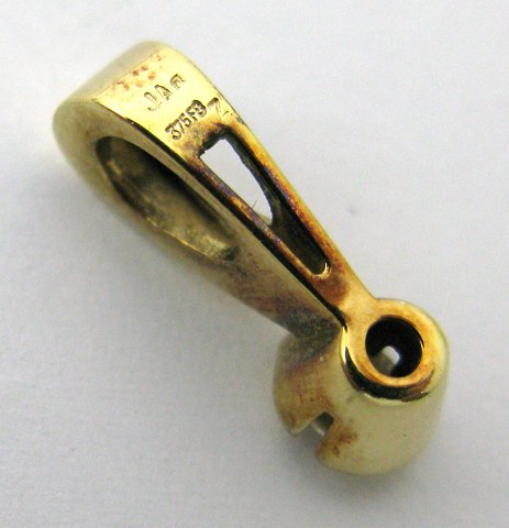 Vedhæng af 9 kt. guld, prydet med sten. L. 16 mm., samlet vægt ca. 1,5 gr.