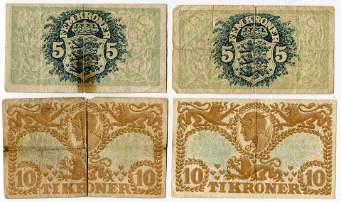 5 kr 1940 G og 1942 J - Sieg 102, DOP 123, Pick 30 og 2x 10 kr 1939 N og 1943 U - Sieg 103, DOP 114, Pick 21