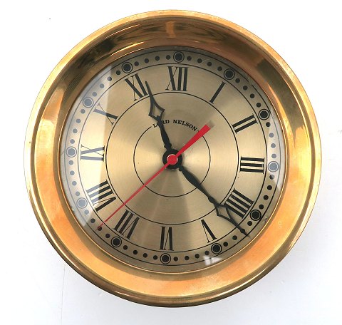 Lot bestående af Lord Nelson vægur af messing med romertal og central sekundviser og quartzværk, samt tilhørende vejrstation med barometer og thermometer. Begge diameter 19 cm.