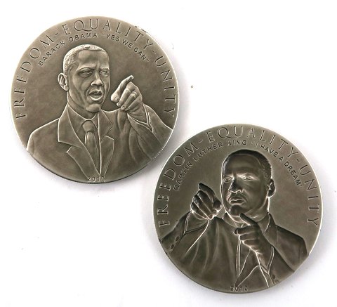 Præg: Barak Obama, udmøntet med tilnærmet negativt præg af den anden mønt, som forestiller Martin Luther King.