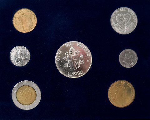 Møntsæt fra Vatikanstaten MSMXC - Anno XII indeholdenden 100 Lire sølv, samt 500, 200, 100 50, 20 og 10 Lire.