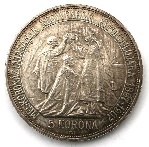 Ungarn, 5 Korona sølv 1907, vægt 24 gr. 0,900