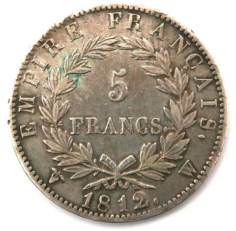 Frankrig, Napoleon, 5 Francs sølv 1812 - KM 694.13