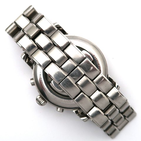 Mont blanc Automatic Chronograph Meisterstück herrearmbåndsur, ref. nr. 7016 i urkasse og med lænke af stål. Sort skive bag safirglas med arabertal, separat sekundviser, dag/dato visning i #3 position samt chronograph funktioner. Automatisk værk. Urkasse diameter 38 mm.