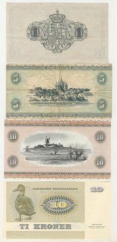 1 kr 1921, 5 kr 1952, 10 kr 1952, 10 kr 1972, 20 kr 1972 samt 10 kr 1943 (6 stk i alt)