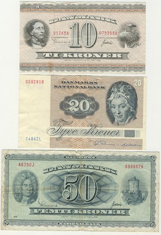 1 kr 1921, 5 kr 1939, 5 kr 1952, 10 kr 1943, 10 kr 1952, 20 kr 1972 samt 50 kr 1970 (i alt 7 stk)