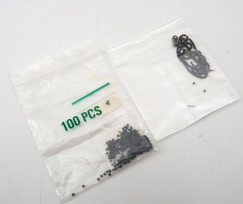 Ole Lynggard 10 mm. kuglelås af 14 kt. guld med hæmatit collier og armlænke. 3 små OL strukturerede sølvperler, Løs hæmatit kædedel og løse hæmatitperler medfølger.