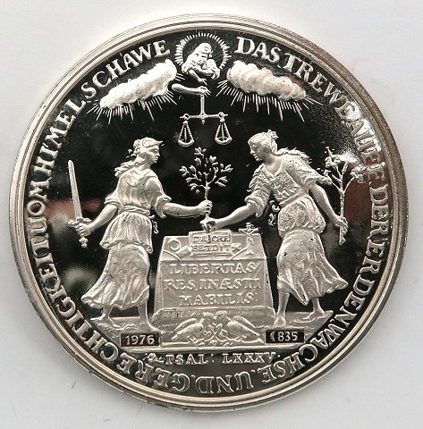 Replika af "Breiter Schautaler", Hansestadt Lübeck. Diameter 50 mm., vægt ca. 33,5 gr. (.835)