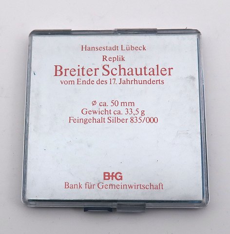 Replika af "Breiter Schautaler", Hansestadt Lübeck. Diameter 50 mm., vægt ca. 33,5 gr. (.835)