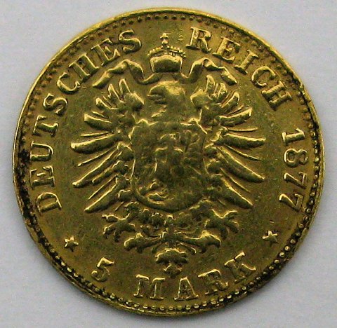Baden, 5 mark 1877 G, KM# 266