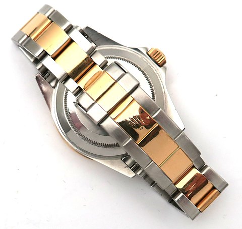 Rolex herrearmbåndsur model Submariner F-serie fra 2004, ref.nr. 16613, i urkasse og med oysterlænke af 18 kt. guld og stål, metallic grå skive med diamant og blå safir besatte indikationer, justerbar lynette, datoangivelse ved 3" position, safirglas, automatisk urværk. Urkasse diameter 40 mm.